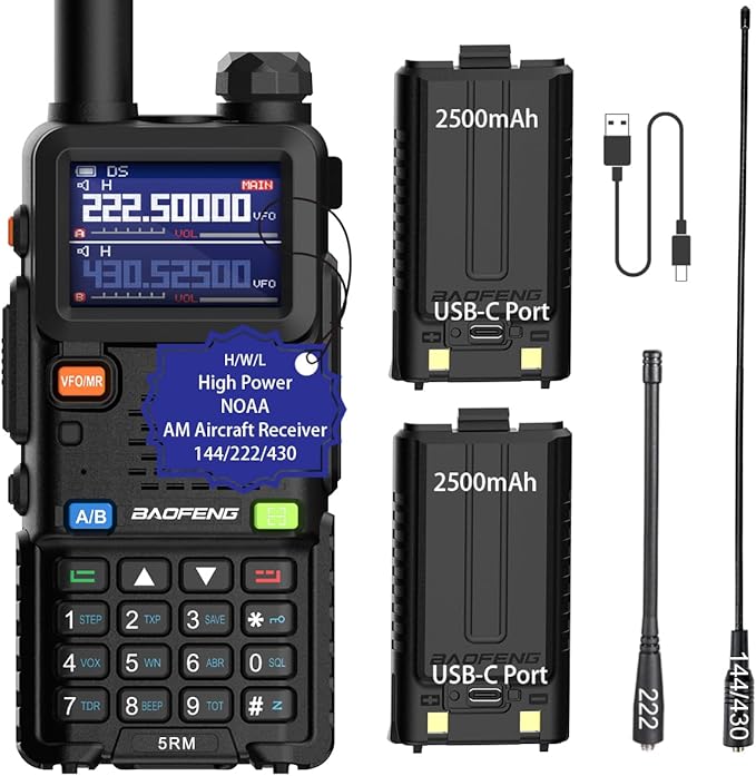 Ham Radio Handheld Baofeng Radio 5RM Long Range Walkie Talkies UV-5R Upgraded Two Way Radio, NOAA Weather, Type C Charging, 999CH Frequency Copy, Rechargeable 2500mAh Battery, Hiking Hunting Trip