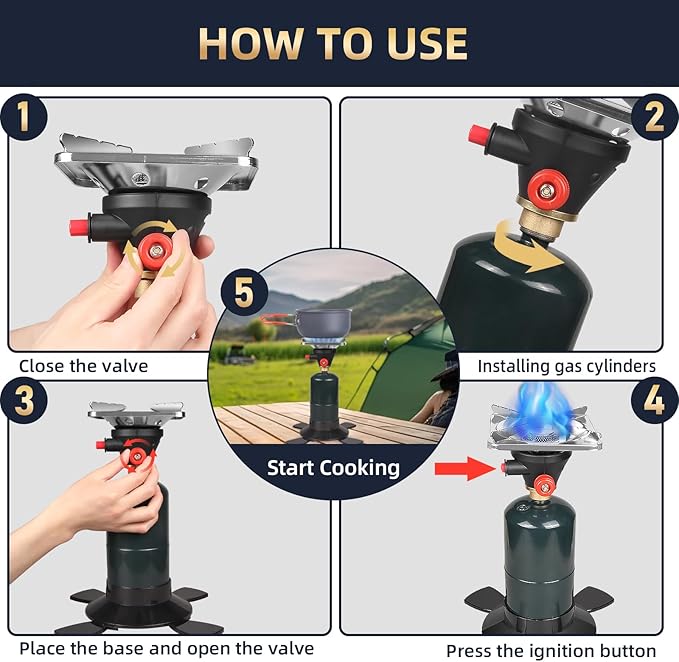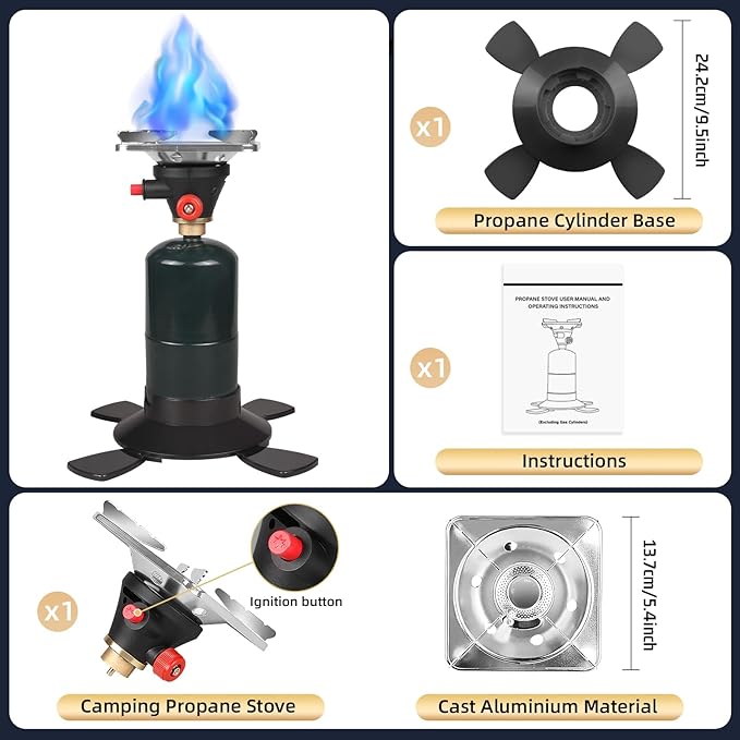 - 🔥【List of Camping Stoves】Camping stove x 1, gas cylinder base x 1, instructions x 1, propane tanks are not included.