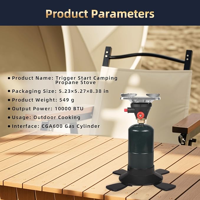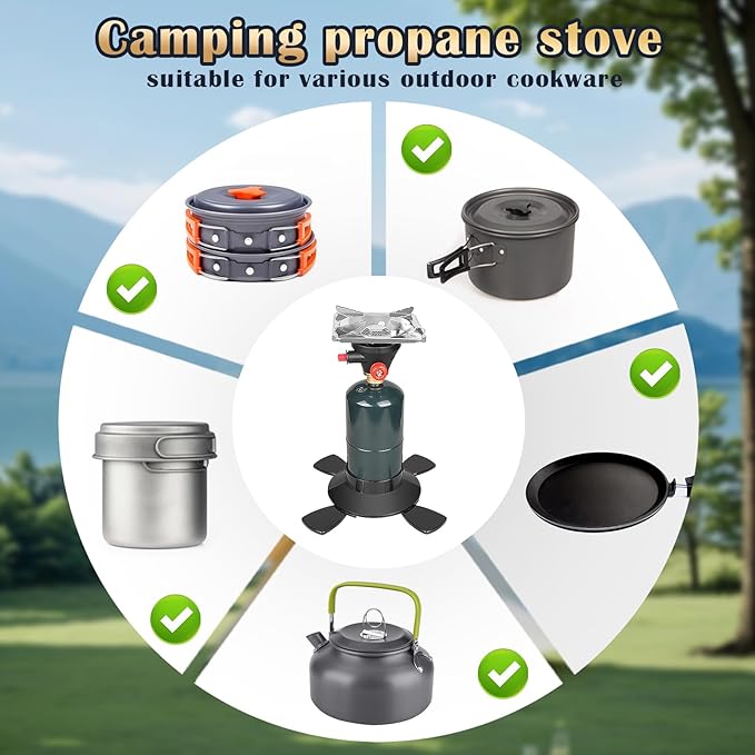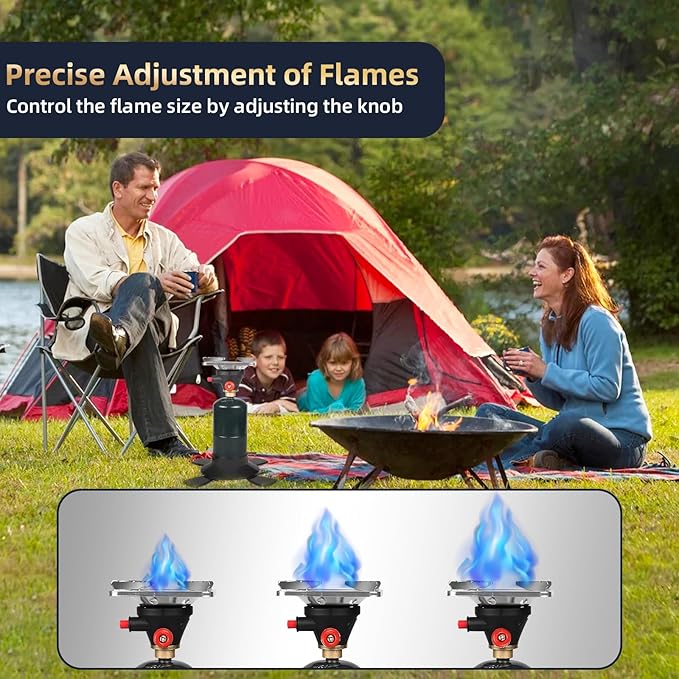 - 🔥【High Power Propane Camping Stoves】Our camping propane stove can provide up to 10,000 BTU of cooking power. The propane camping stove can be used for outdoor frying, boiling and various cooking methods, allowing you to quickly complete cooking in a short time. It is very suitable as a cooking tool for outdoor enthusiasts, and is perfect for camping, fishing, hiking, and barbecue.