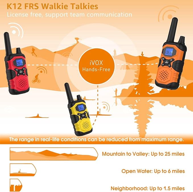 - 【Hands-Free, Hassle-Free With iVOX】:Engage in efficient and easier conversations without pressing a button. Our IVOX hands-free feature ensures your communication is always smooth and enjoyable, especially when multitasking. With IVOX feature, whether you're climbing, setting up camp or navigating trails, your walky talky experience is always a step above the rest