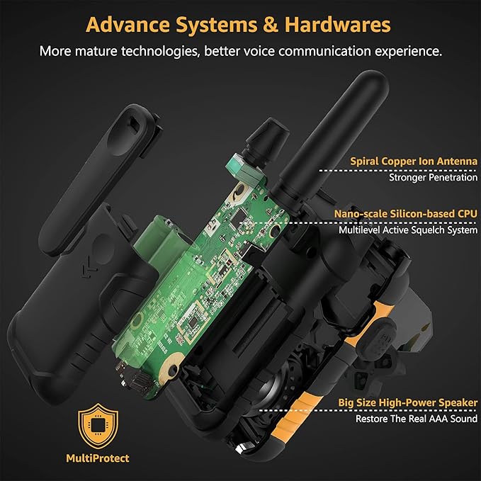 - 【Long Range, Smooth And Clear Voice Transmissions】:Experience a leap in long distance walkie talkies audio quality with our mature cutting-edge systems & hardwares(spiral copper ion antenna, nano-scale Silicon-based CPU & large high-power speaker). Designed for better voice communication, ensuring every message is loud and clear, making every conversation enjoyable and efficient. From workplace communications to outdoor excursions, enjoy clearer, more reliable, and seamless voice communication