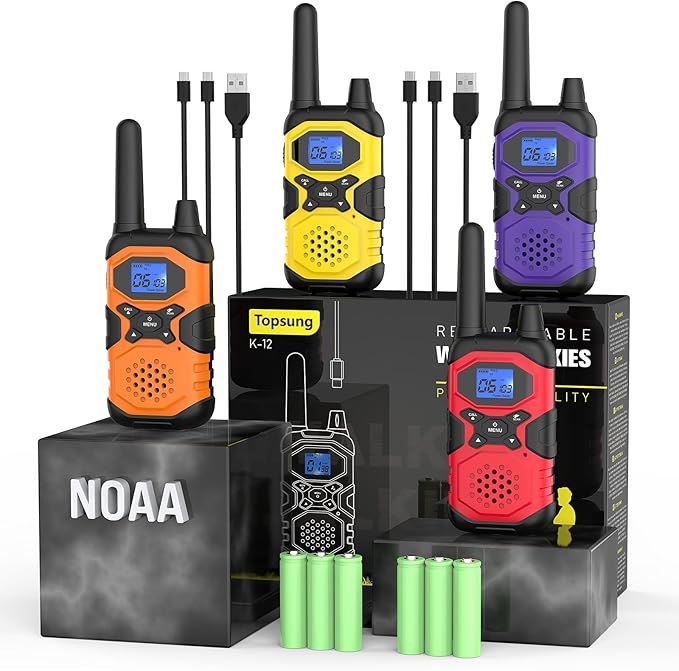- 【Always Prepared With NOAA Alerts】:Stay a step ahead of nature with Topsung NOAA walkie-talkies, even when there's no cell service in remote areas. With our integrated National Weather Service, stay updated on all hazard weather channels. Act faster with alerts, granting you the vital moments needed to ensure your family's safety during unpredictable weather conditions