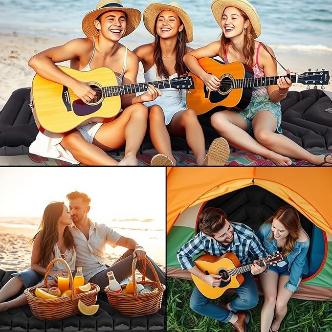 - 【Extra size & 4" Thick Sleep Support】Air mattress camping Innovative design is made with body mapping technology shape and with pillow 6 inch thickness. Built-in pillow are designed to relieve back and neck pressure, no matter sleep on one's back or sleep on one side. Our Camping bed 4 inch thickness, 27 inch width & 77 inch long, will keep your body away from the uneven ground and hard rocks, ensuring maximum comfort and warm. comes in 2 colors Black (top) and dark gray (bottom)