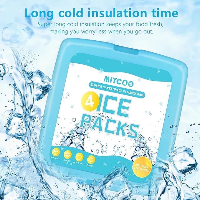 MIYCOO Ice Packs for Lunch Boxes & Lunch Bag - Quick Freeze Ice Pack Space Saving Freezer Packs - Reusable Slim Original Cool Pack - Cool Coolers Accessories for Beach, Camping and Fishing