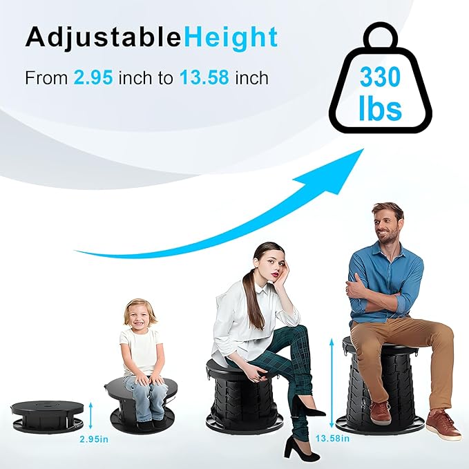 - Adjustable Height Portable Toilet: Adapts to the needs and comfort of different users. By adjusting the height of the toilet stool, you can get the optimum sitting height according to your personal preference or needs, providing a more comfortable and ergonomic experience. Both children and adults can personalise the height adjustment to suit them.