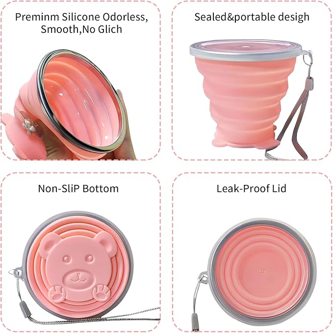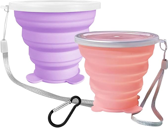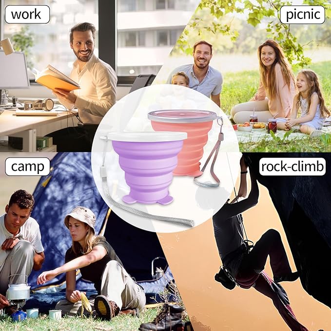 - Collapsible Cup, Silicone Collapsible Travel Cup, Expandable Folding Camping Drinking Cup with Lids Reusable Small Portable Mugs Cup for Travel, Camping, Hiking, Beach, Holiday Vacation, Outdoor Sports