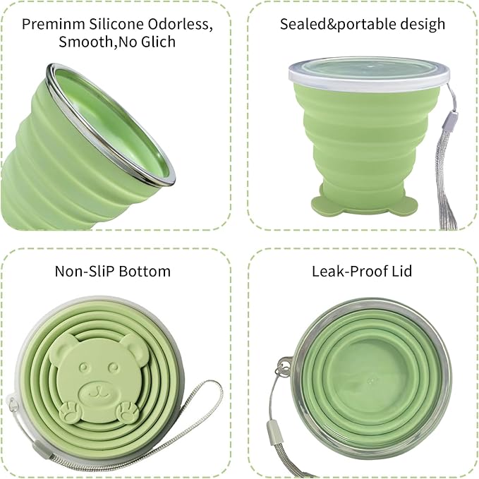 - Collapsible Cup, Silicone Collapsible Travel Cup, Expandable Folding Camping Drinking Cup with Lids Reusable Small Portable Mugs Cup for Travel, Camping, Hiking, Beach, Holiday Vacation, Outdoor Sports