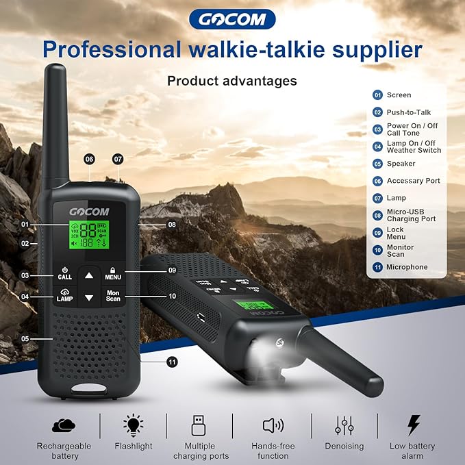 - FRS Walkie Talkies - These two-way radio can communicate to any analog radios, in one-to-one or one-to-more options. The bold LCD faceplate provides high visibility.