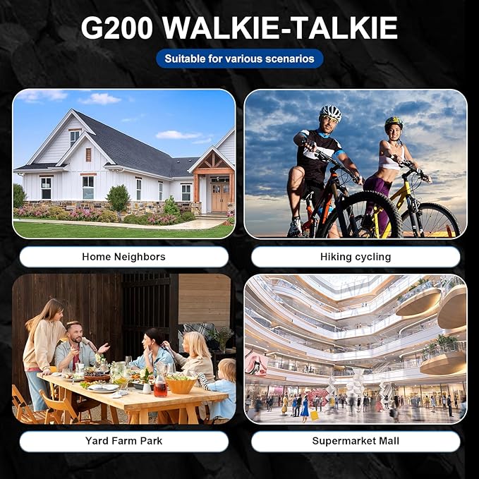 G200 Walkie Talkies for Adults, Long Range Two Way Radios Family Radio Service (FRS) Rechargeable 22 CH NOAA VOX Scan Flashlight 4 Pack Hand held radios
