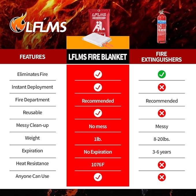- PRODUCT TO GIVE YOU PEACE OF MIND: LFLMS fire blanket is recommended by firefighters and fire volunteers. No messy extinguishers. No regular maintenance required and don't have to worry that it will expire. It will be enduring and reliable for your home and kitchen fire safety needs. This is the best gift for friends or family.