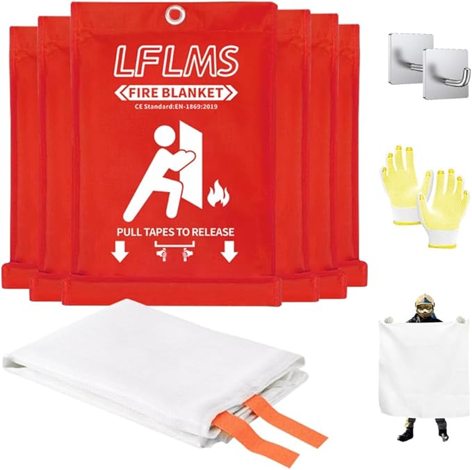- FIRE BLANKETS EMERGENCY FOR HOME: Our LFLMS Fire blankets can easily extinguish small fires, helping you swiftly and correctly respond to fires, ensuring safety for you and your family. Each pack includes 1 pair of gloves and 2 hooks. Use the gloves for enhanced safety. Two Stainless Steel Hooks for easy hanging on a wall in your kitchen or workshop for quick access.