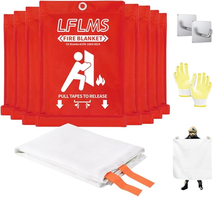 - FIRE BLANKETS EMERGENCY FOR HOME: Our LFLMS Fire blankets can easily extinguish small fires, helping you swiftly and correctly respond to fires, ensuring safety for you and your family. Each pack includes 1 pair of gloves and 2 hooks. Use the gloves for enhanced safety. Two Stainless Steel Hooks for easy hanging on a wall in your kitchen or workshop for quick access.