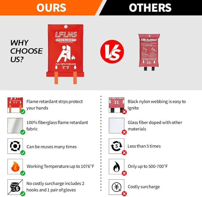 - PRODUCT TO GIVE YOU PEACE OF MIND: LFLMS fire blanket is recommended by firefighters and fire volunteers. No messy extinguishers. No regular maintenance required and don't have to worry that it will expire. It will be enduring and reliable for your home and kitchen fire safety needs. This is the best gift for friends or family.