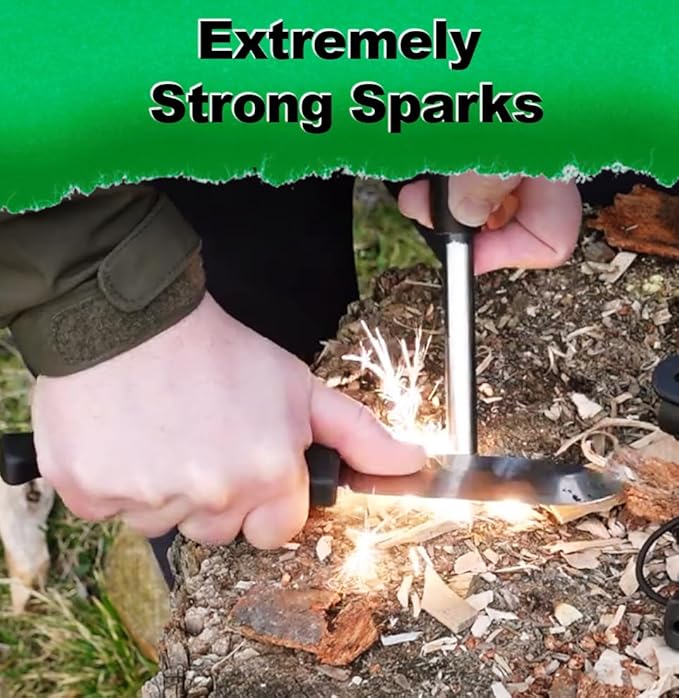 - Ideal for Beginners to: The special composition of our fire steel produces extremely big and hot sparks, making starting a fire very easy, even in harsh weather conditions.