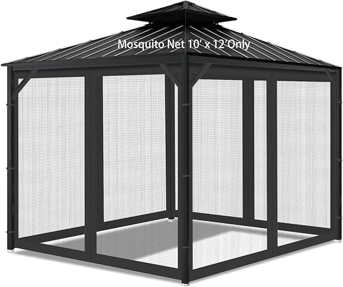 Gazebo Universal Replacement Mosquito Netting, 10' x 12' Outdoor Mesh Netting Screen 4-Panel Sidewall with Zipper for Patio Canopy Garden Porch Pergolas and Backyard, Black(Mosquito Net Only)