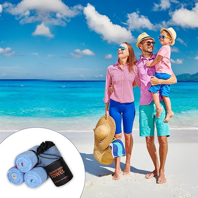 - EASY to CARRY: The towel set can easily carry your quick dry beach towel to different places. The single storage mesh bag is suitable for you to carry when traveling alone.