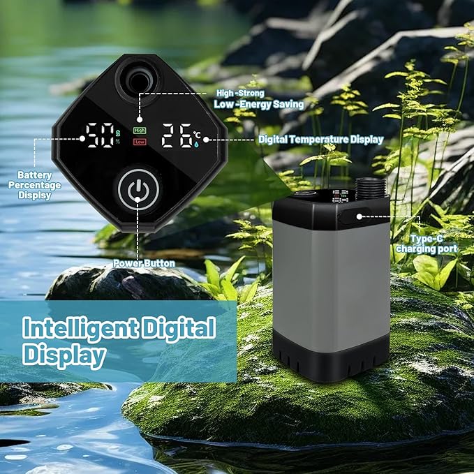 - 【Intelligent Digital Display】 This portable water pump features a smart digital display, showing water temperature, battery level, and adjustable high/low-pressure water flow rates. The real-time water temperature display applies from 0-60℃, the indicator light is blue for water temperature below 35°C, green for water temperature 35-45°C, and red for water temperature above 45°C. Our portable shower pump helps prevent scalding from hot water and midway power outages. (Note: No heating function.)