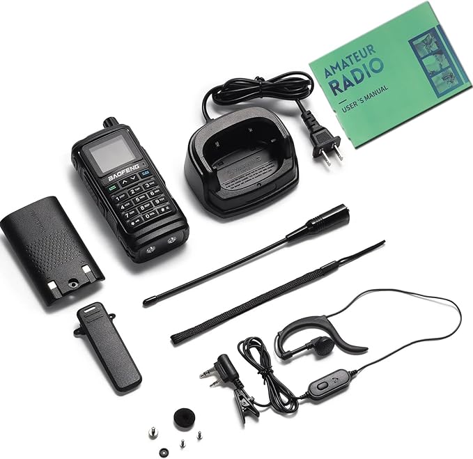 - Included Components : Baofeng UV-17R tri-band radio with Antenna x 1, 1800mAh rechargeable battery(with one screw)x 1 ,Desktop Charger x 1,Headset x 1, Belt clip x 1,Hand Strap x 1,User's manual x 1. Baofeng UV-17R tri-band radio with Antenna x 1, 1800mAh rechargeable battery(with one screw)x 1 ,Desktop Charger x 1,Headset x 1, Belt clip x 1,Hand Strap x 1,User's manual x 1.