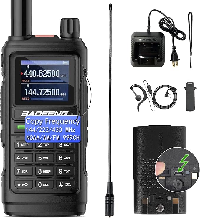 - Two Charging Methods: Baofeng ham radio handheld upgraded type c port is behind the battery, which is convenient to charge anytime and anywhere, or you can choose desktop charger, don't worry about the battery life.