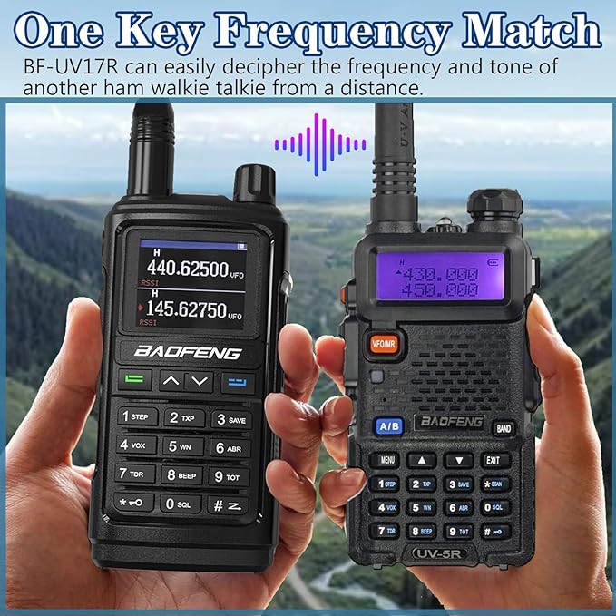- Wireless Frequency Copy: UV-17R can quickly copy the frequency of another radios walkie talkies, which is convenient for you and your partner to set up quickly. The walkie talkies long range can determine what CTCSS or DCS tone the repeater is transmitting, and the privacy code can be copied and stored.