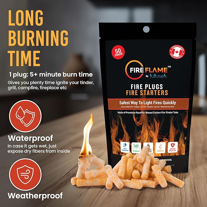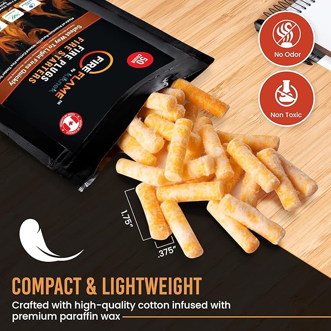 - NO ODOR, NO SMELL, NO CHEMICALS, NON TOXIC – The FireFlame fire starter comprises all-natural paraffin wax that is both safe and effective. With no harmful substances or unpleasant odor, these fire plugs are an ideal choice for emergency situations requiring cooking or fire creation. Formulated without any toxic ingredients, they are safe for use in your grill or wood stove.