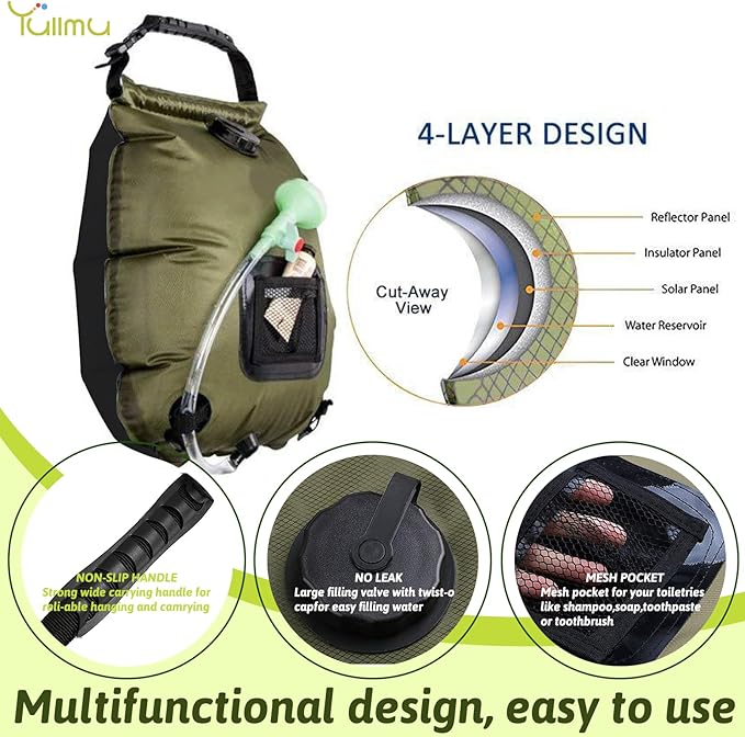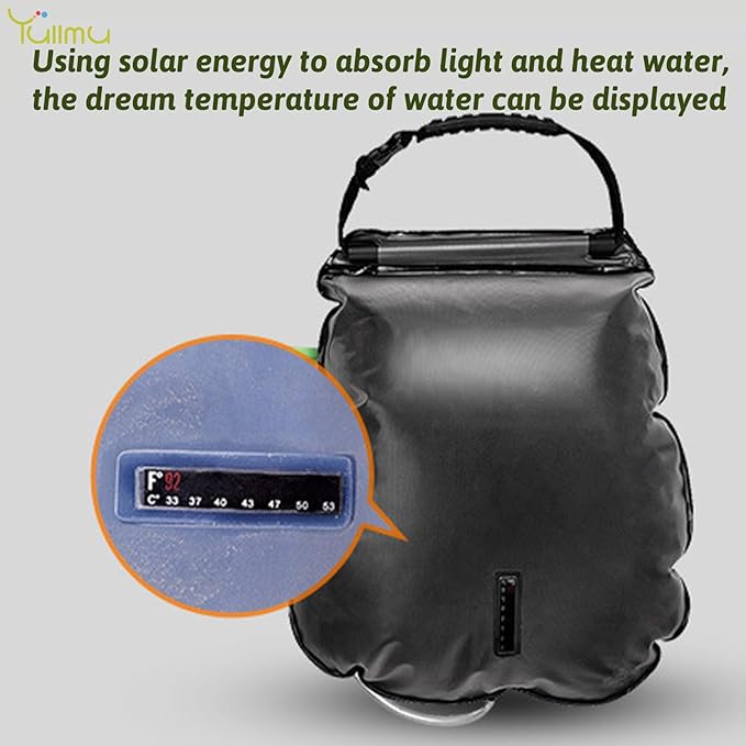 - 【Portable Solar Shower Bag】With this portable shower bag, the water in the bag heats up to 113°F (45°C) within 3 hours under direct sunlight. Ultra-light and foldable, easy to carry and easy to store