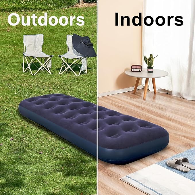 - Multi-Scene Versatility:Functions as an indoor guest bed, RV mattress, hiking basecamp pad, or emergency floor bed with <5-minute manual inflation. Waterproof base layer adapts to concrete, grass, or uneven terrain without slippage.