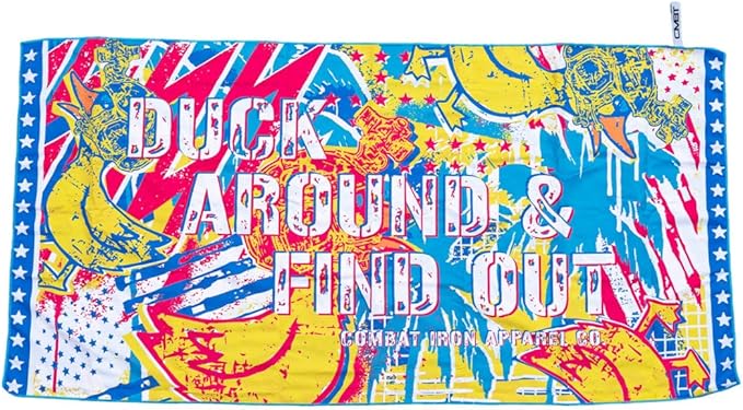 Combat Iron Apparel Microfiber Beach Towel - Fast Drying, Sand-Free Super Absorbent, 3’ x 5’ with Mesh Bag, Ultra Compact (Duck Around Find Out)