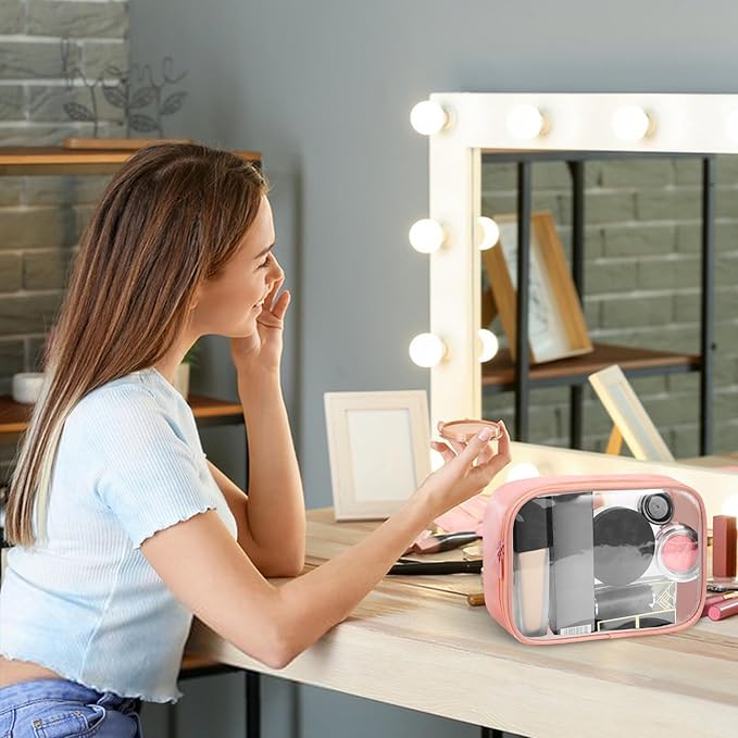 Moyad TSA Approved Clear Toiletry Bag, 1 Pack Quart Size 3-1-1 Liquids Pouch for Travel, Transparent Makeup & Cosmetic Organizer for Women Men, Peach Pink
