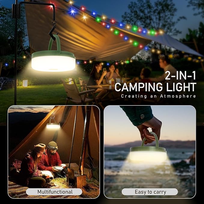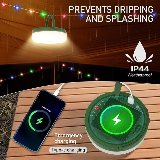 - Materials and Waterproofing Properties: This outdoor waterproof portable string lights is made of PC and ABS material, the LED String Light is wrapped with soft rubber, smooth and texture, can be bent and folded coiled, 360° illumination, translucent light, no flicker. The body of the camping lights for tent has IP44 waterproof rating and the string lights has IP67 waterproof rating, which can help you create a warm and romantic environment.