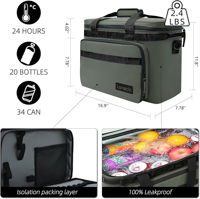 - 【Convenient to Carry】: The LANEDO Cooler features a soft and comfortable shoulder strap, making it a breeze to transport whether you're headed to the beach, camping, or a tailgate party. Say goodbye to cumbersome coolers and hello to easy, hands-free carrying.