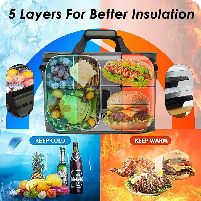 - 【Spacious and Practical】: Inside, discover a spacious interior that comfortably accommodates your lunch, snacks, and more. It's not just about preserving freshness; it's about enhancing your outdoor experience with maximum comfort.