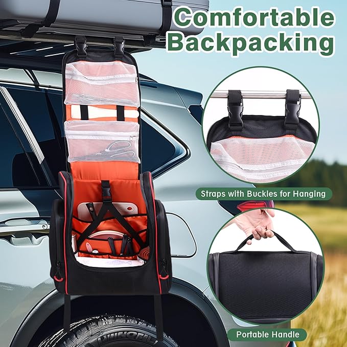 - 【Hanging Portable Design】Featuring two adjustable buckles on the main compartment cover, camp utensil organizer easily hangs on RVs, tents, branches, or camping equipment. This design maximizes space utilization and convenience, ensuring comfort during outdoor activities.