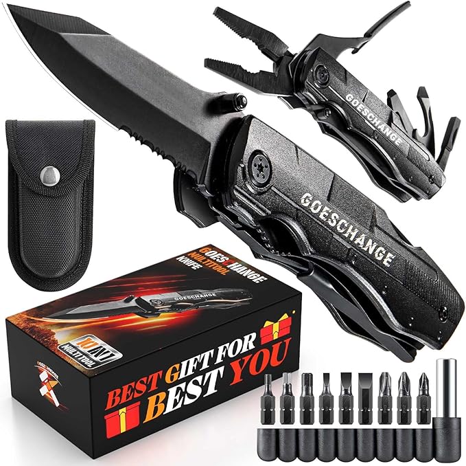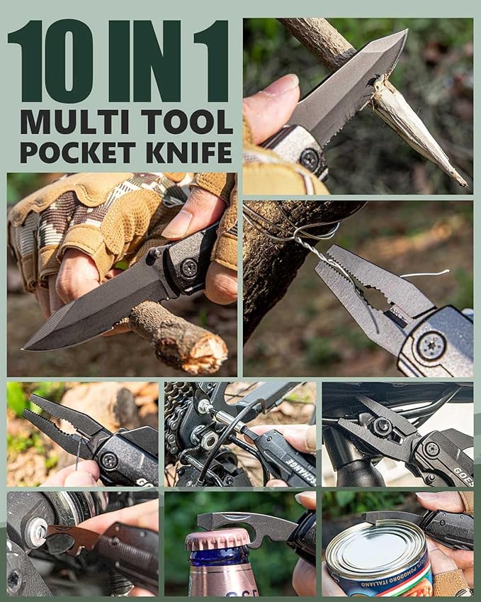 10-IN-1 Multi Tool with Pocket Knife, Screwdrivers, Pliers, Bottle Opener, Can Opener, Safety Locking, Nylon Shealth - Father's Day Gift, Gift for Him Men Husband Boyfriend, Multitool Knife