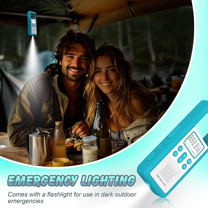- 【Flashlight】The Quolix Walkie Talkie has a white LCD screen with enough visibility at night to clearly display the contents of the walkie talkie. The built-in flashlight can illuminate 5-10 meters. It is a great helper for exploring at night.