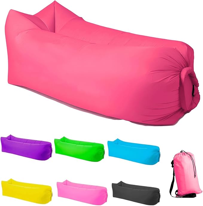 - 【EASY INFLATION】-No pump required. Simply open it up against the wind and whisk it through the air to fill the lounger. You may need to do this 3-4 times. Then roll the edges in, buckle and you are done! It can also be inflated with a fan. Once inflated, the blow up couch can be used as a beach lounge, beach chairs, camping chairs.