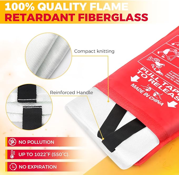 - Easy to Use: In an emergency, every second counts. Our survival blankets is user-friendly, allowing even those with no prior training to deploy it quickly and efficiently. Simply pull down the tabs, spread the firefighter blanket over the fire, and let it do the work.