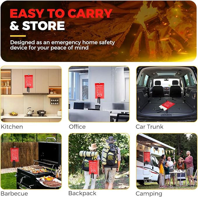 - Durable and Reusable: Made from high-quality, fire-resistant materials, this fire extinguisher for home is built to last. This emergency fire blanket can be reused after washing and inspecting it for damage, providing long-term protection and peace of mind for you.
