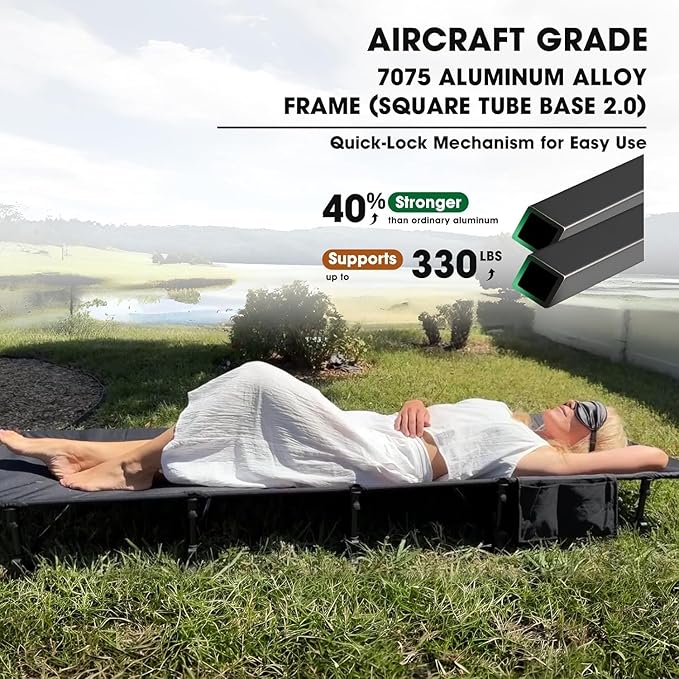 - EASY-TO-INSTALL CAMPING COT AVOID DAMPNESS RELY ON ITS 6.7” HEIGHT AND WATERPROOF THINKEN NYLON CLOTH.