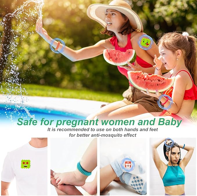 - ADJUSTABLE & ONE SIZE FITS ALL - These mosquito repellent stickers are made of high quality non-woven EVA fabric. Stretchy, comfortable and adjustable. Suitable for kids and adults. It can also wear on wrists, ankles and your hair.