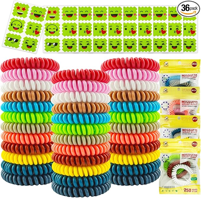 36 Pack Mosquito Repellent Bracelets, Individually Wrapped DEET-Free Insect & Bug Repellent Wristbands with 60 Pcs Mosquito Repellent Stickers for Kids & Adults Outdoor Camping Fishing Traveling