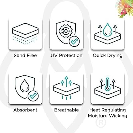 Luv Bug UPF Pool/Beach Towel, Sunscreen Towel, UV Protection, UPF 50+, Sand Free Absorbent & Quick Dry Swimming Towel for Beaches, Camping, & Travel (28.5" x 58.5", Bold Blooms)