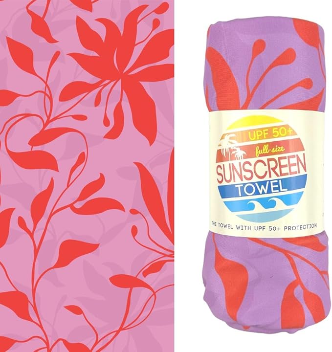 - UPF SUNSCREEN TOWEL - Dry off after a day at the beach or pool while also protecting sensitive skin from the sun’s harmful rays. Available in a variety of fashion prints