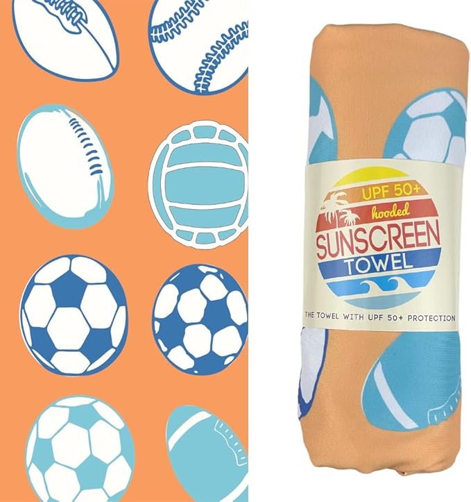 Luv Bug Kids UPF Pool/Beach Towel with Hood, Sunscreen Towel, UV Protection, UPF 50+, Sand Free Absorbent & Quick Dry Swimming Towel for Beaches, Camping, & Travel (30.5" x 40.5", Sports)
