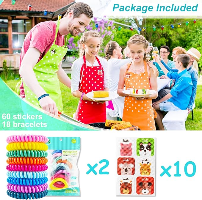 18 Pack Mosquito Repellent Bracelets with 60 Pack Mosquito Patches, DEET-Free Insect & Bug Repellent Wrist Bands for Kids & Adults Outdoor Camping Fishing Traveling