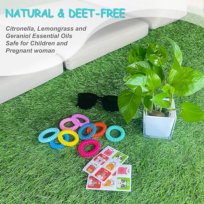 - NATURAL & DEET-FREE : Non-toxic and safe to use against mosquitoes, bugs and annoying insects as our bracelets have Citronella, Lemongrass and Geraniol Essential Oils. Deet-free and safe for children and baby.