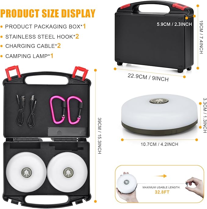 2 Pieces Camping String Lights - Outdoor String Lights with 8 Modes, Type-C Fast Charging, Durable & Waterproof for Camping, Party, and Christmas, with Storage Case (32.8ft-2pcs)