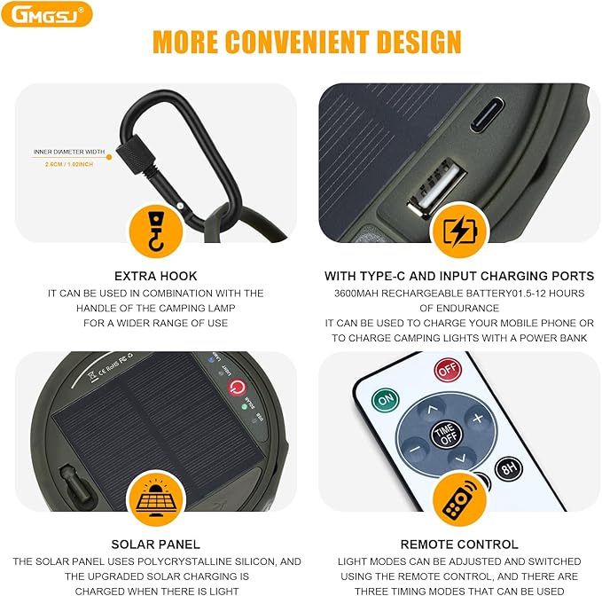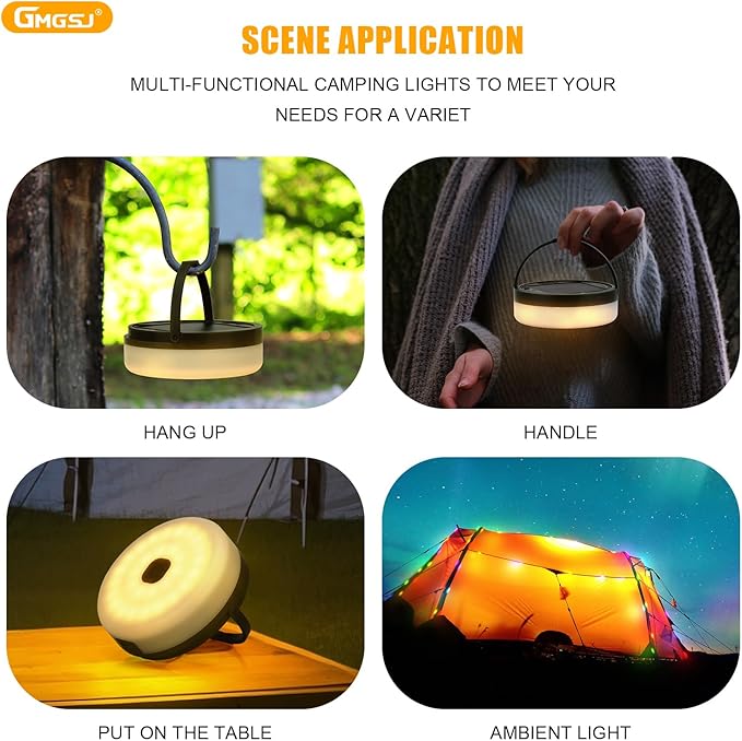 - MULTI-FUNCTIONAL SOLAR CAMPING LIGHT:GMGSJ camping light is a combination of lantern and string light, built-in 150 warm white LEDs, emitting warm and soft light, like scattered stars, illuminating your tent and exuding a warm and romantic atmosphere, it is a must-have for summer vacation camping
