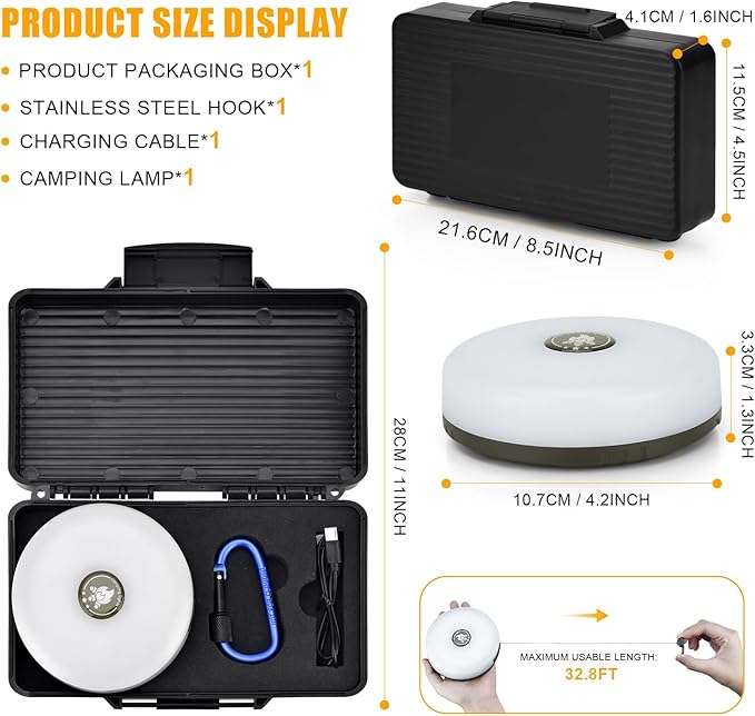 Camping String Lights - Outdoor String Lights with 8 Modes, Type-C Fast Charging, Durable & Waterproof for Camping, Party, and Christmas, Portable & Easy-to-Store with Storage Box (32.8ft-1pcs)