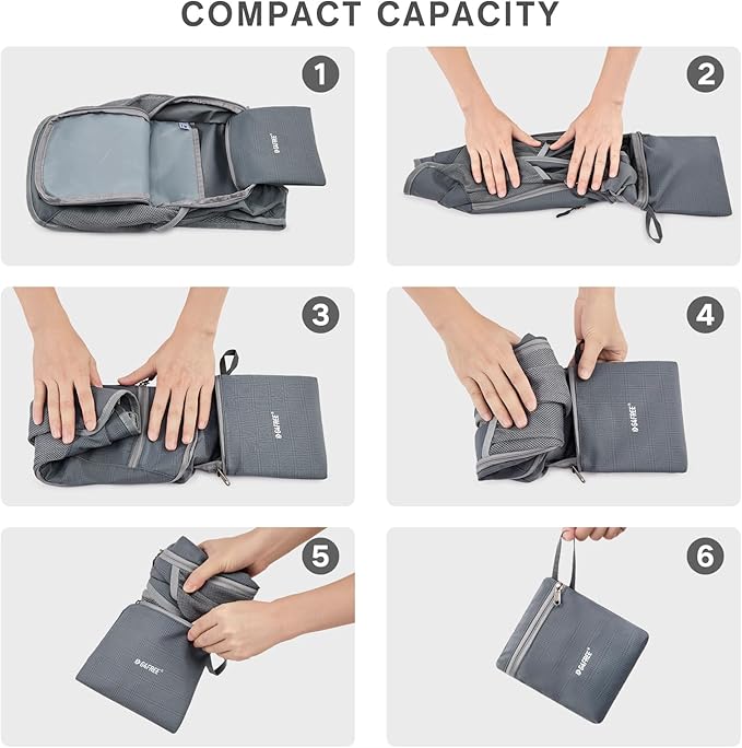 - FOLDABLE: This backpack is easy to fold up into its pocket (Not included extra pouch. Just its own inner pocket to pack with. ) Unfold size: 15.5x9x3.5inches. Folded size only 7.5 x 6inches, easily pack it in your suitcase, backpack, or car and simply unfold from your checked bags and use it as a carry-on for your excess baggage to avoid the overweight charge.